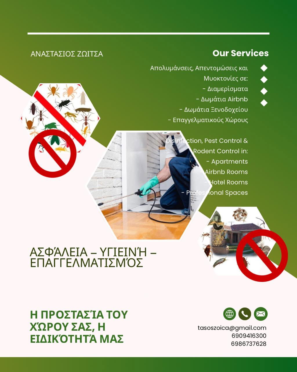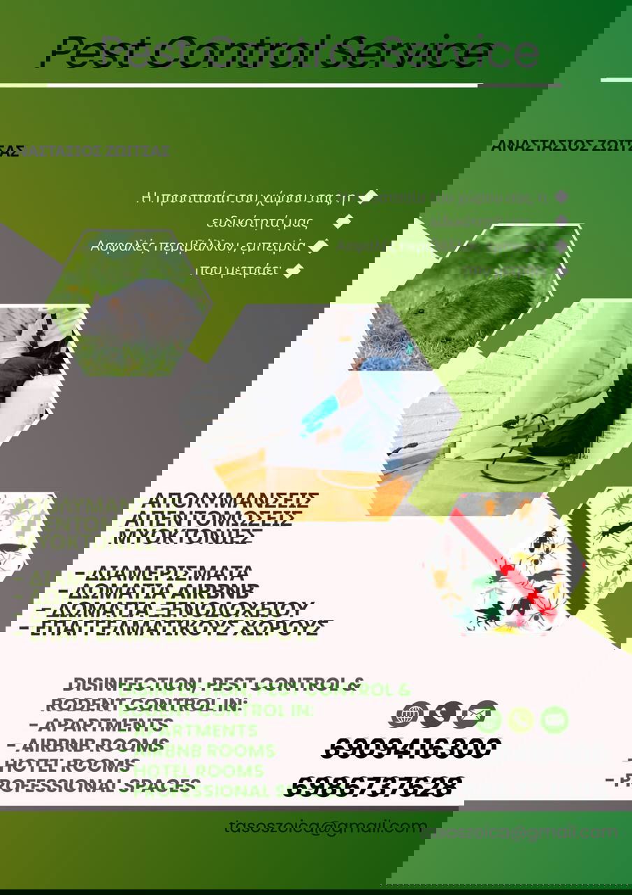 Απολύμανση όλων των χώρων Απεντόμωση Μυοκτονία Πιστοποιητικά AIRBNB